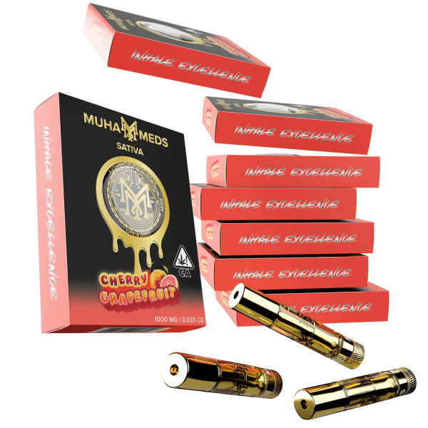 Try the Cherry Grapefruit cartridge by Muha Meds – your burst of fruity flavors and energy!