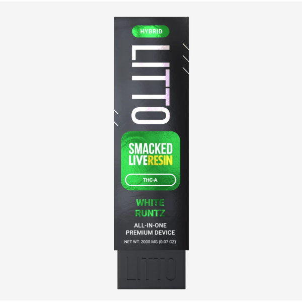 White Runtz by LITTO is a hybrid All-In-One device from the Smacked series that combines rich flavor 🍬 with a balanced effect 🌿. Infused with Live Resin THCA, this product preserves the richness of cannabinoids 🌱 and terpenes for an authentic experience ✨.