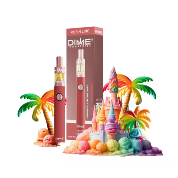Immerse yourself in the world of sweet flavor and relaxation with the Sunset Sherbert Rosin All-In-One Rechargeable Vape by Dime Industries. The perfect choice for those who value quality and convenience.